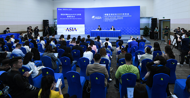 3月31日拍摄的博鳌亚洲论坛2023年年会闭幕新闻发布会现场。新华社记者 杨冠宇 摄