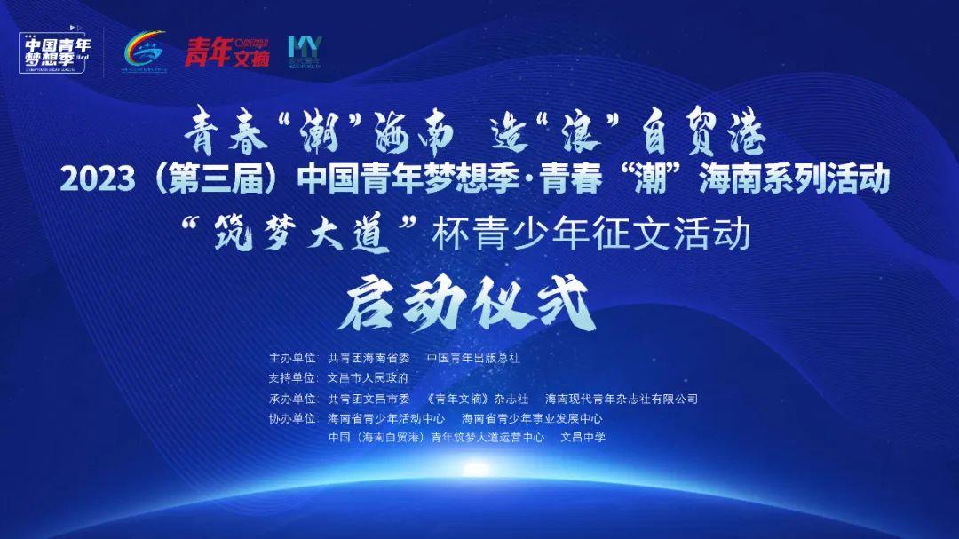 2023年4月12日,由 和中国青年出版总社共同主办,共青团文昌市委、青年文摘杂志社、现代青年杂志社承办的“筑梦大道”杯青少年征文活动在海南省文昌市正式启动。